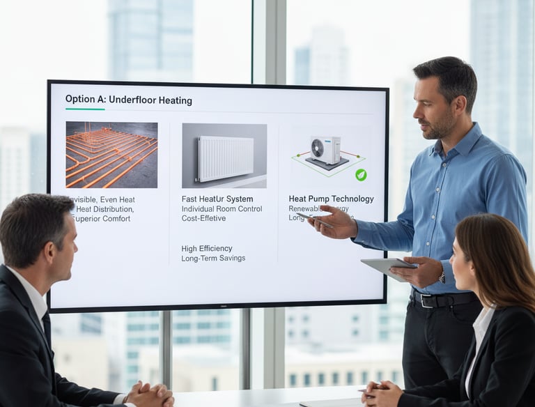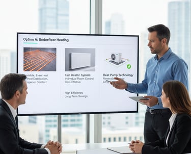 Yaptığımız hesaplar doğrultusunda, projenize en uygun ısıtma sistemi seçeneklerini avantajları ve tahmini bütçeleriyle birlikte size sunarız.